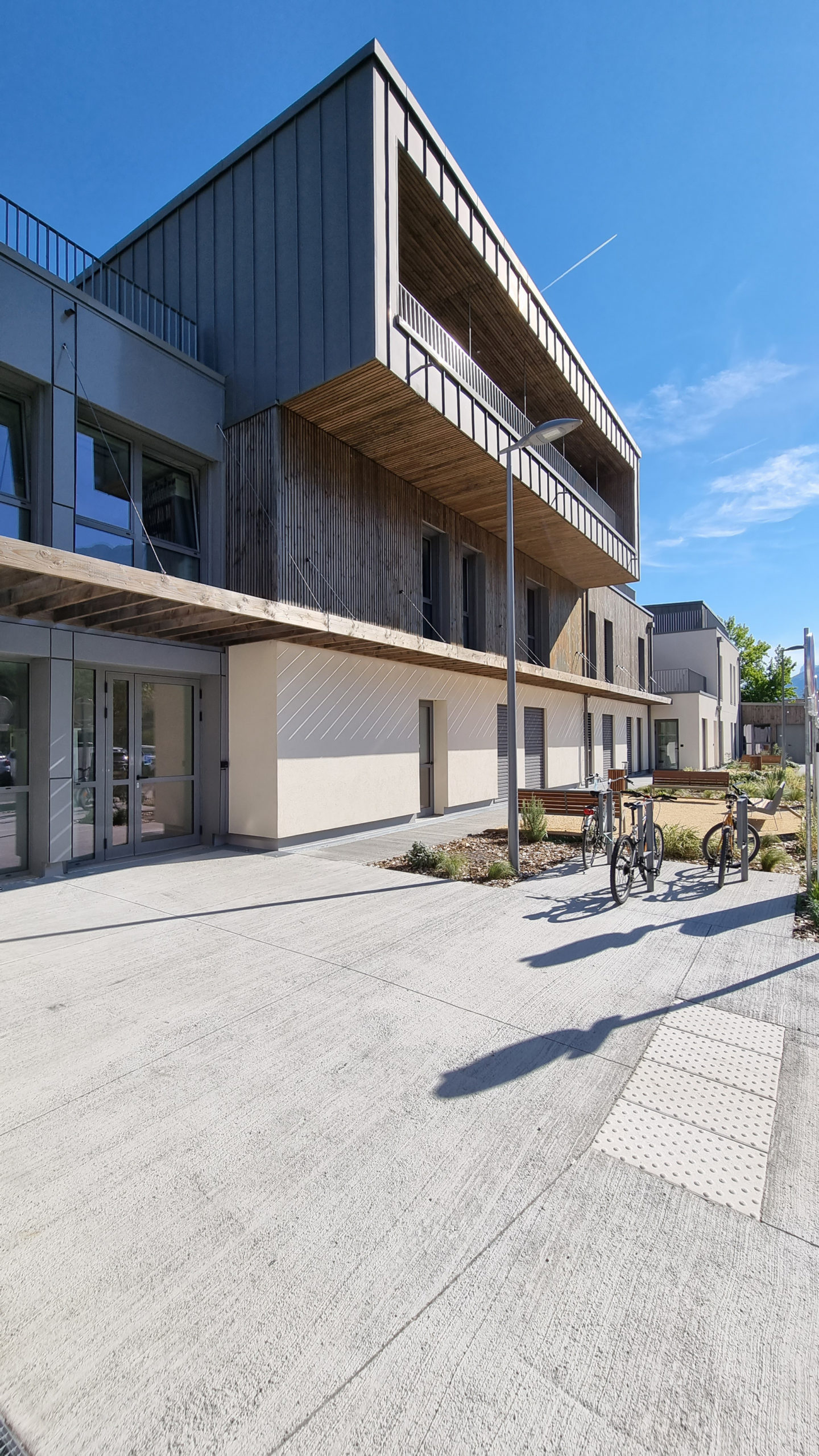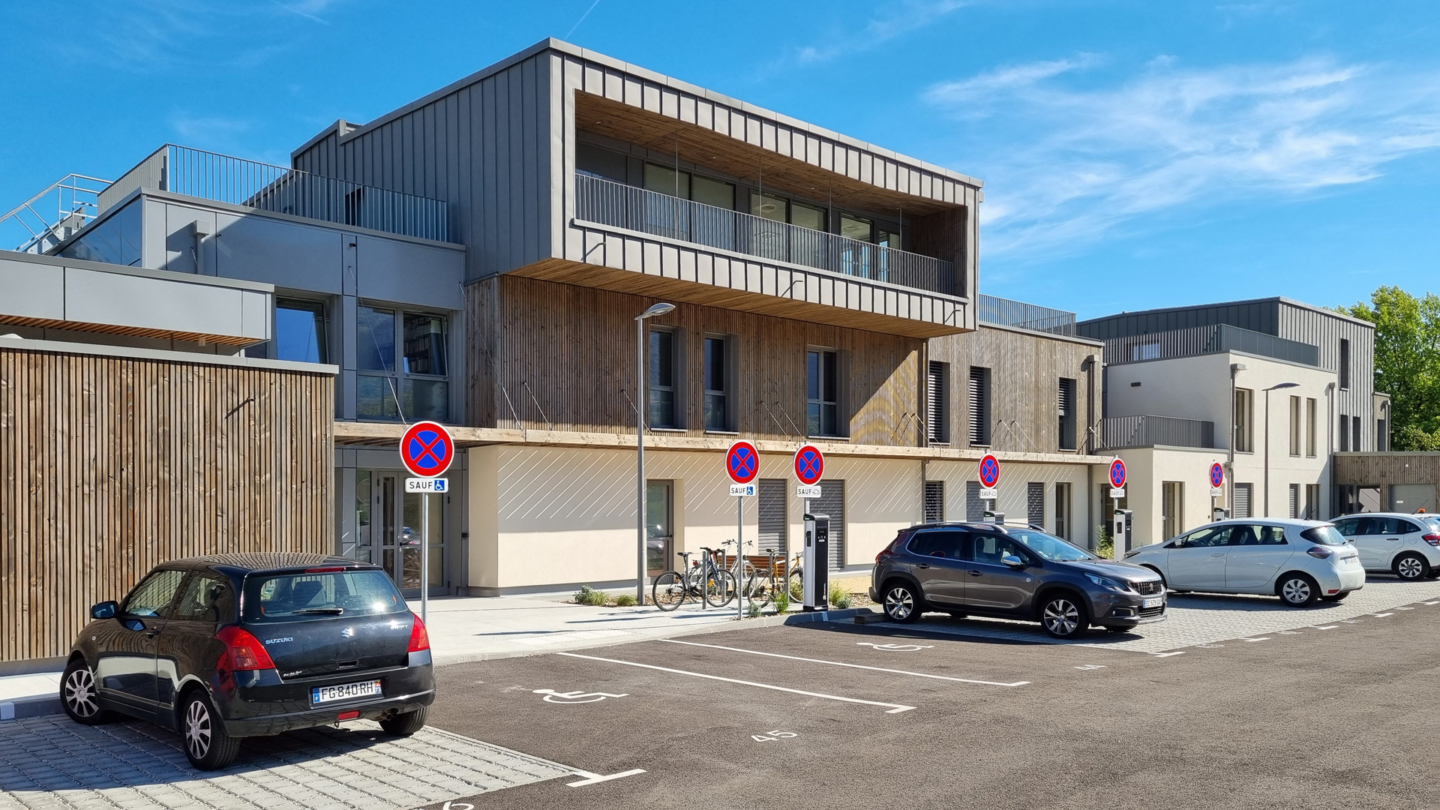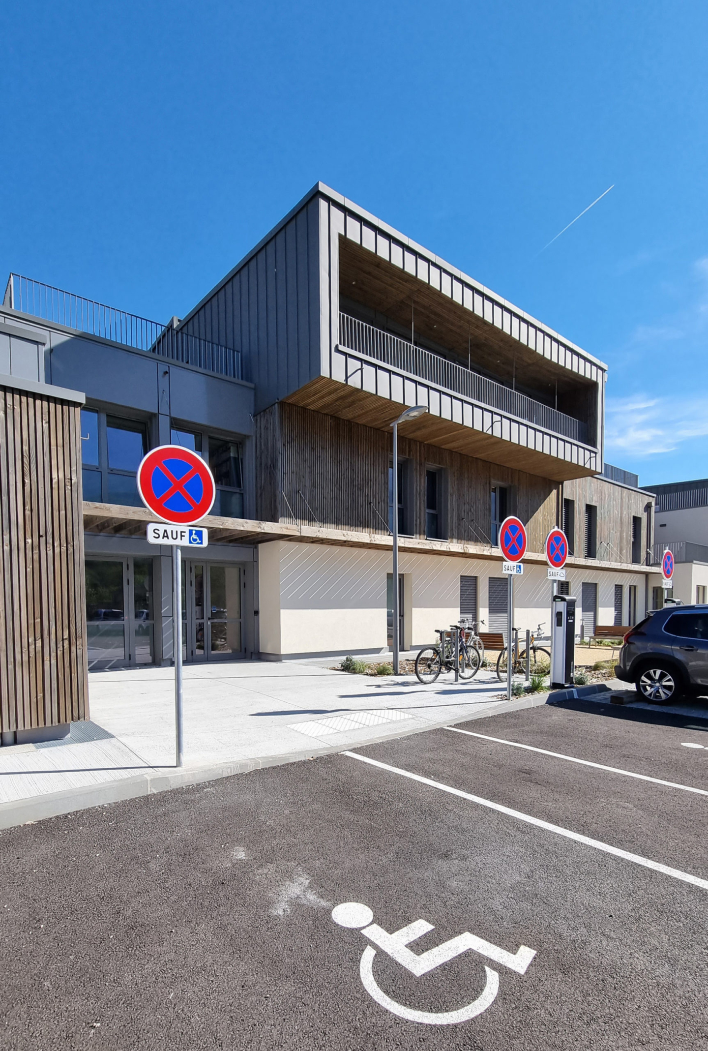 Construction d’un bâtiment comprenant des équipements d’intérêt collectif accessibles au public (Salle polyvalente, PMI) ainsi que des bureaux (administration de la MDD et les partenaires extérieurs). Nous avons basé notre recherche sur des formes innovantes en affirmant une modernité architecturale tout en respectant le cadre rigoureux d’une construction par système modulaire.